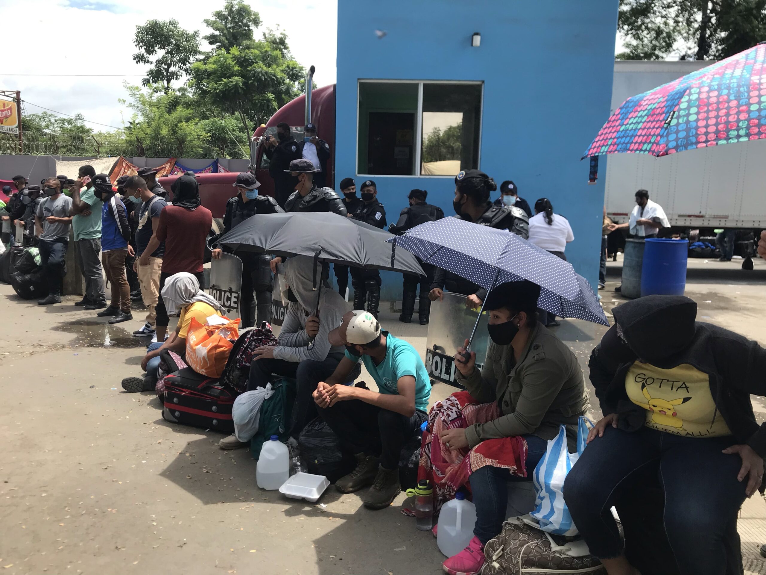 De acuerdo al grupo de micas, en están sin comida, agua, dinero y durmiendo en el piso aglomerados, desde ya hace unos cinco días, la mayoría viene de Panamá.