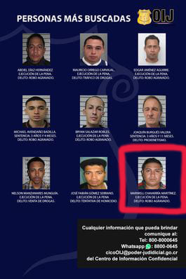 Según las autoridades el nicaragüense una condena de seis años de prisión por el delito de robo agravado, y ahora la orden de captura contra Chavarría, fue emitida por el Juzgado de Ejecución de la Pena de San José desde el 12 de noviembre del 2019.