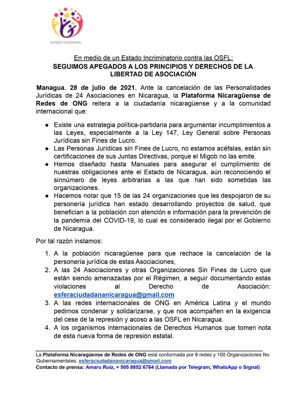 LEER ADEMÁS: Dictadura sandinista despoja de sus personerías jurídicas a 24 oenegés de profesionales