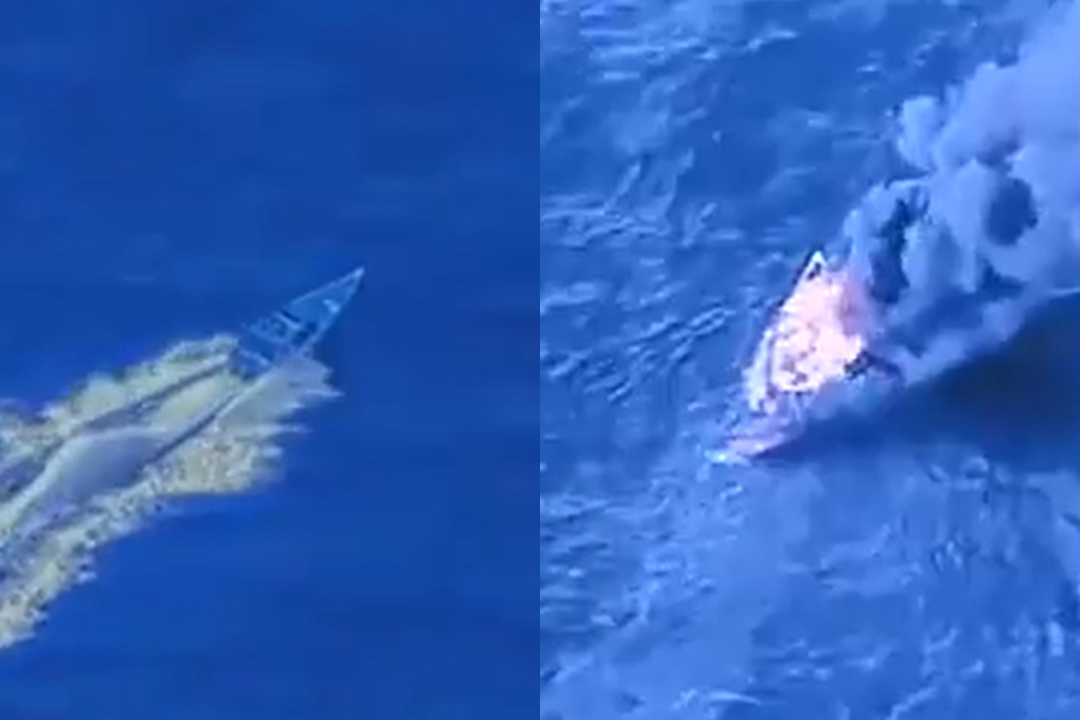 Imágenes del ataque estadounidense en contra de una narco-lancha en aguas internacionales cerca de territorio venezolano, divulgado el 3 de octubre, 2025, por el secretario de Guerra de Estados Unidos, Pete Hegseth.