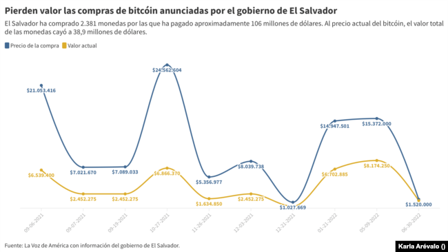 Mientras que el economista René Hernández habla de “una pérdida no realizada”, pues aunque el valor de las monedas haya bajado, el gobierno de El Salvador aún no ha vendido las criptomonedas, y por lo tanto no hay pérdidas directas.