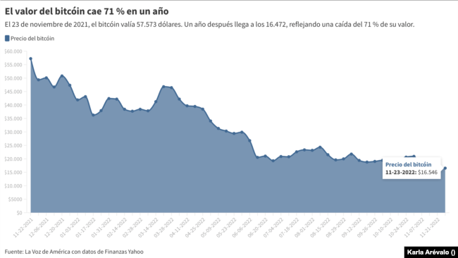Hasta ayer 23 de noviembre, a poco más de un mes para que finalice el 2022, el valor del bitcóin en el mercado es de 16.546 dólares; y solo la República Centroafricana, de casi 5 millones de habitantes, adoptó la moneda de forma legal este año.