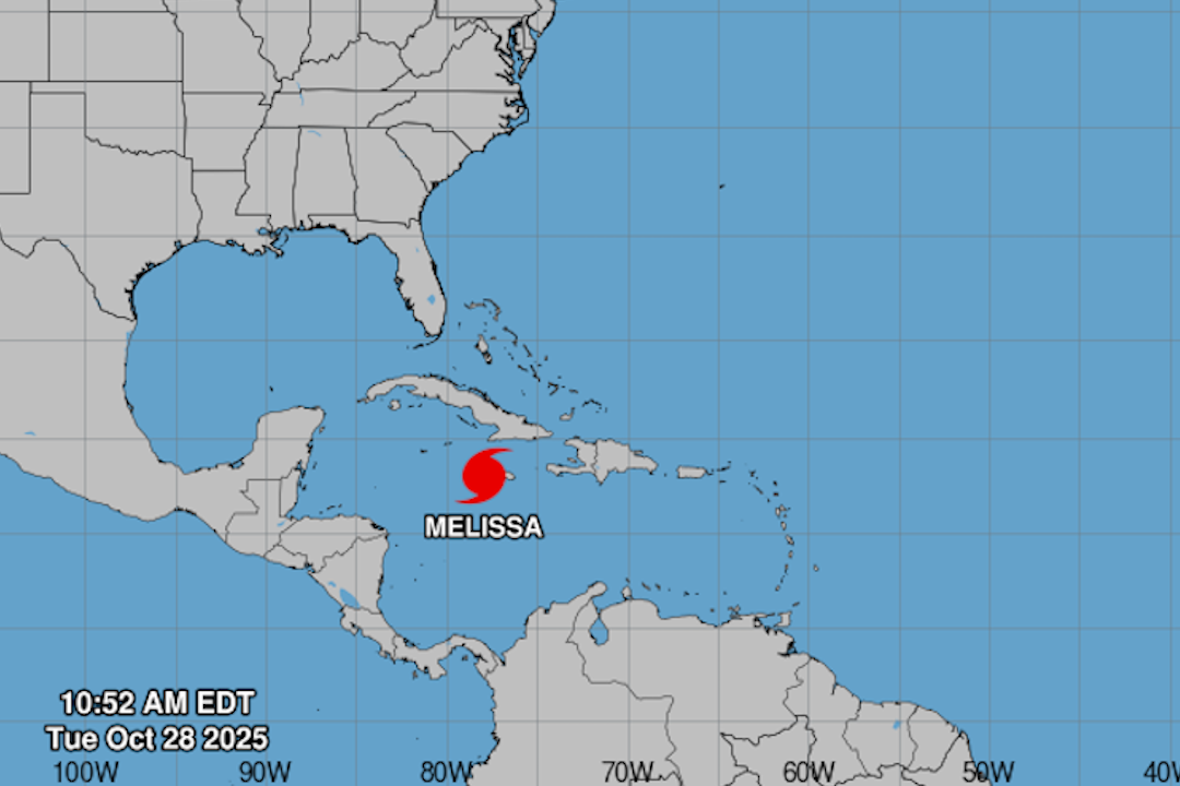 Huracán Melissa según ubicado por el NHC el 28 de octubre, 2025.