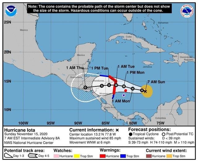 IOTA espera fortalecerse rápidamente en un “Gran Huracán” con vientos catastróficos