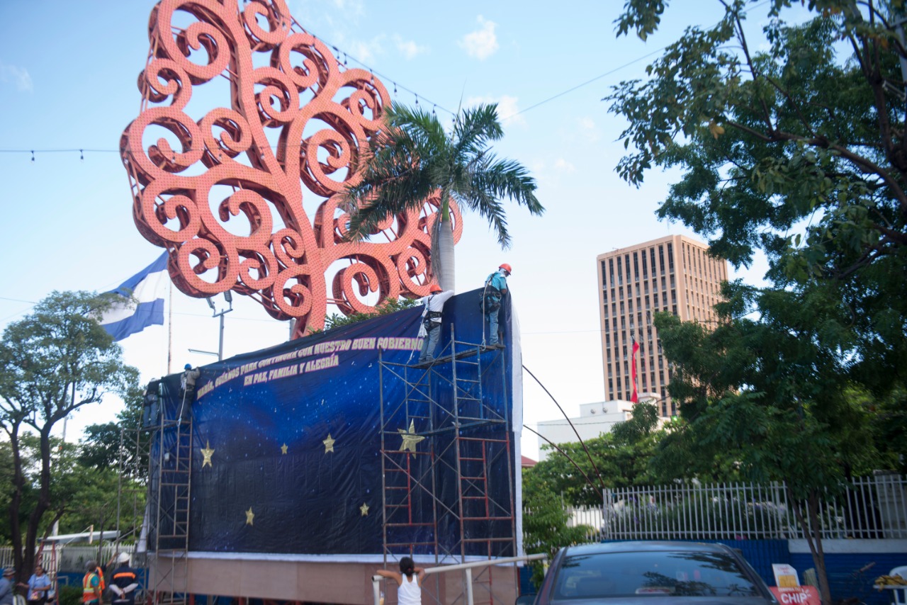 En comparación a otros años las instituciones de la dictadura ya había mandado desde mediados de noviembre a instalar los altares de la Purísima, pero este 2020 apenas comenzaron a instalarlos desde este miércoles 25, trabajando contra reloj porque el novenario inicia este sábado 28.