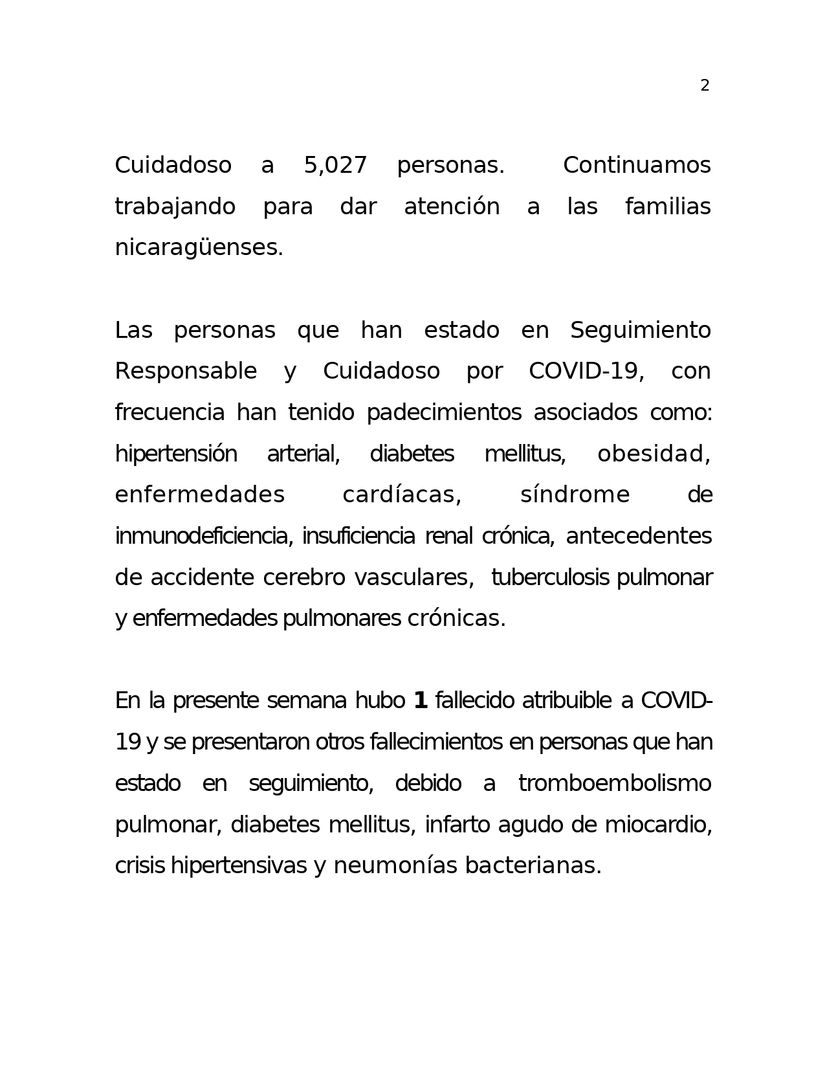 El Ministerio de Salud de Nicaragua publicó su comunicado oficial sobre la situación del COVID-19 en la que además de mencionar los nuevos casos y los casos recuperados, informó que personas que “se les estaba dando seguimiento” fallecieron sin dar un dato exacto.
