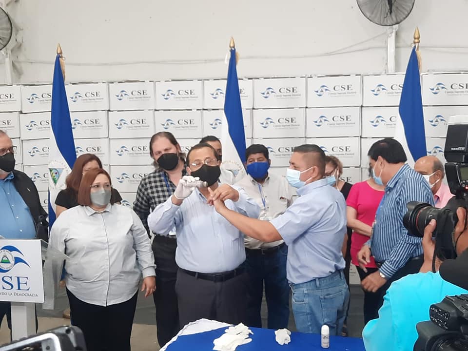 Este miércoles magistrados y magistradas sandinistas del Consejo Supremo Electoral, en conjunto con representantes legales y fiscales generales de los partidos políticos, denominados “zancudos”, “verificaron la indelebilidad de la tinta” que se le aplicará a los votantes en el circo electoral, que realizará Daniel Ortega el próximo 7 de noviembre.