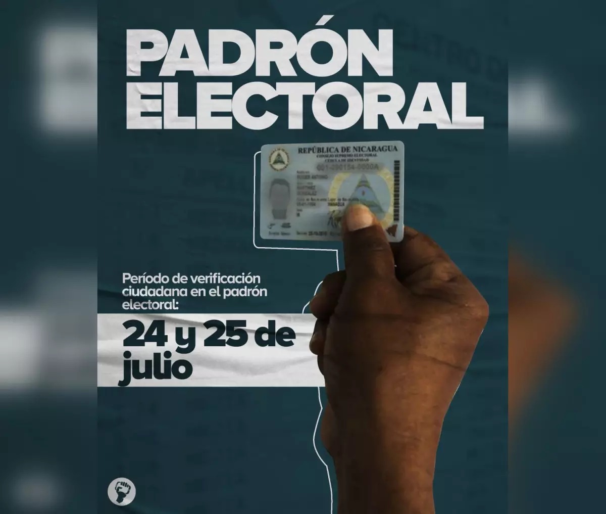 La Presidenta del Consejo Supremo Electoral, magistrada sandinista Brenda Rocha, anunció que se acerca el período de verificación ciudadana en el padrón electoral el 24 y 25 de julio de cara a las elecciones a realizarse el próximo 7 de noviembre. Rocha no dio ninguna explicación al respecto de como sería este proceso ciudadano.