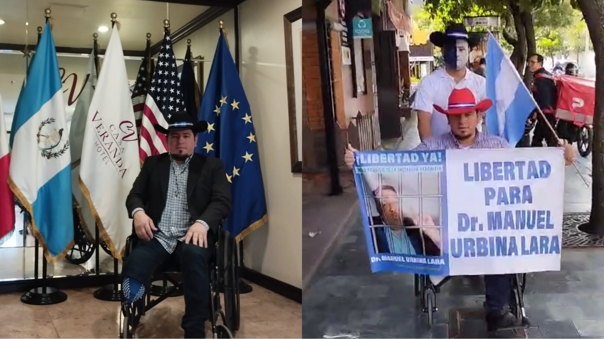 Expreso político en silla de ruedas recorre calles de Guatemala exigiendo libertad para reos de conciencia