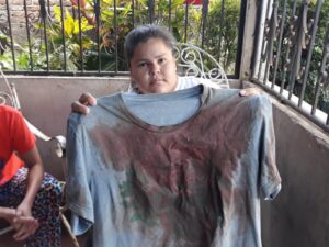 Según sigue detallando Masiel Núñez que cuando su amigo se bajo de la moto para quitar las ramas, fue cuando recibió el golpe en su cuello y la fractura en su nariz, momento en que los cargaron a golpes y machetazos a los tres.