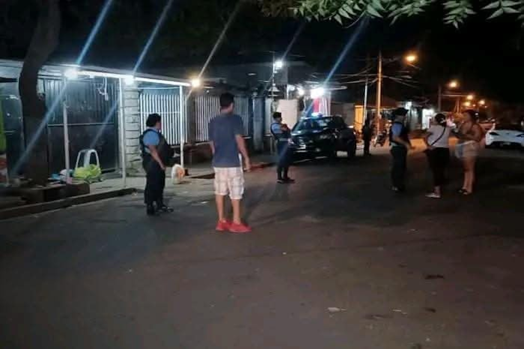 Policías interrogando a testigos del atentado en contra de Elba López en El Riguero, Managua. 1 de octubre, 2025.