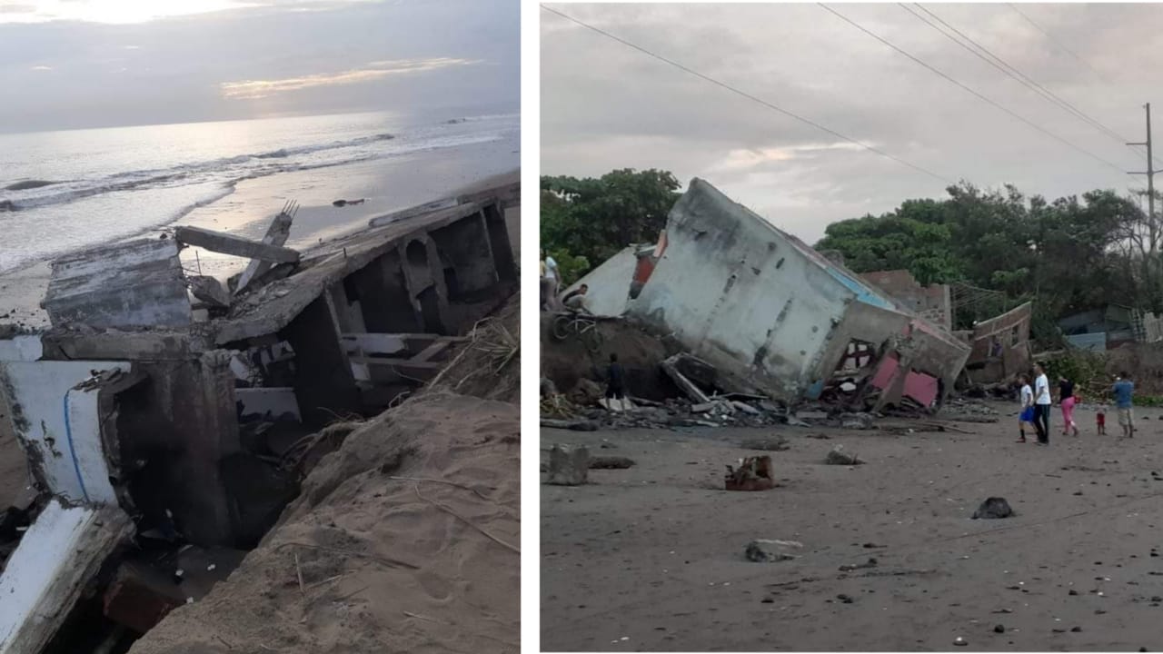 “Tuvimos que irnos a refugiar allá estamos amontonados, todas la familias están donde sus familias”, dijo Jackeline Leiva, a quien las olas le arrancaron por completo su vivienda.