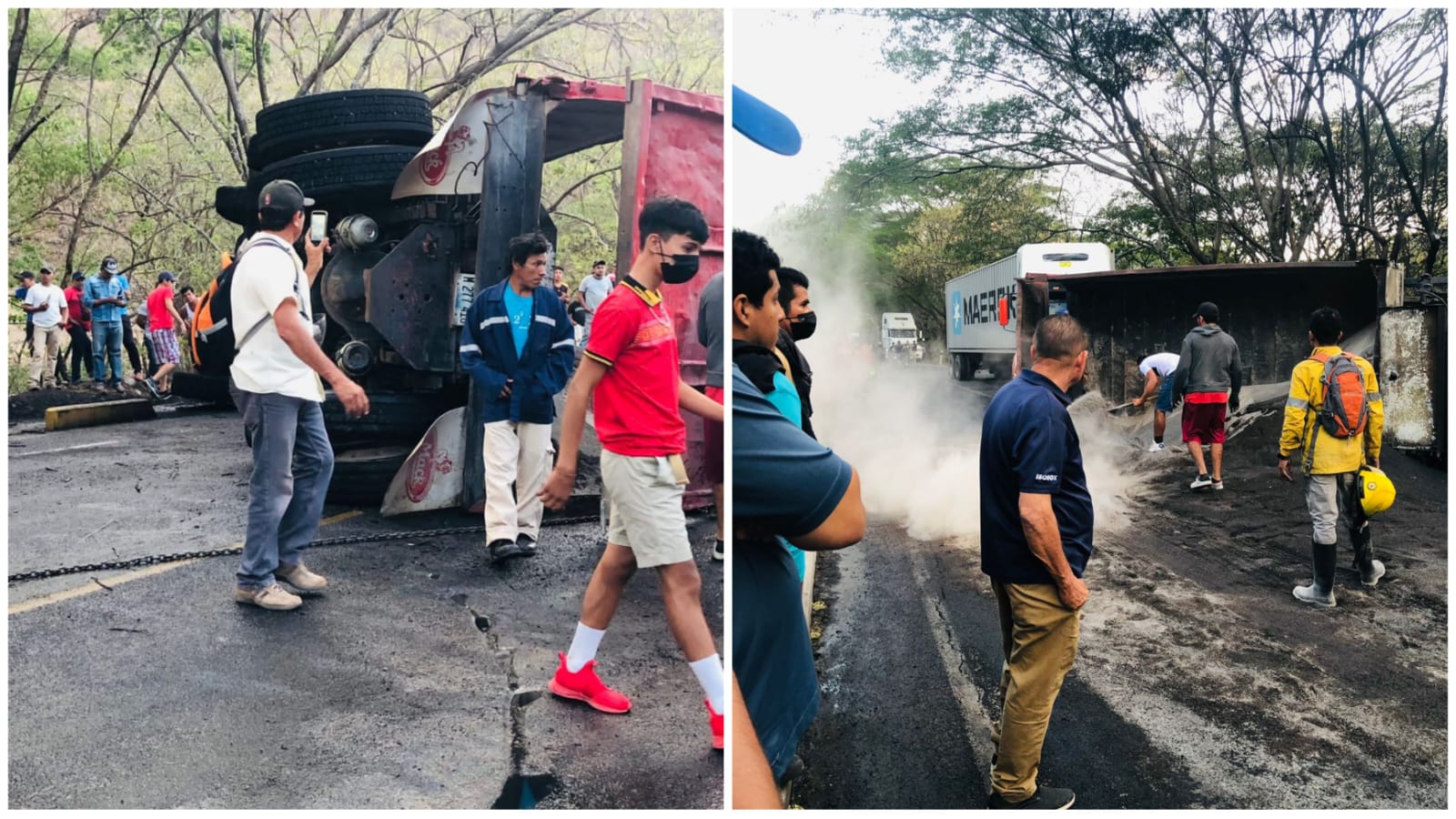El volquete, al momento del suceso, cargaba arena y tierra por lo que las autoridades correspondientes, se dispusieron a realizar la limpieza de la vía internacional y despejar el tráfico.