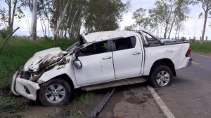 Seis personas resultan lesionadas en colisión y vuelco de camioneta en Tipitapa