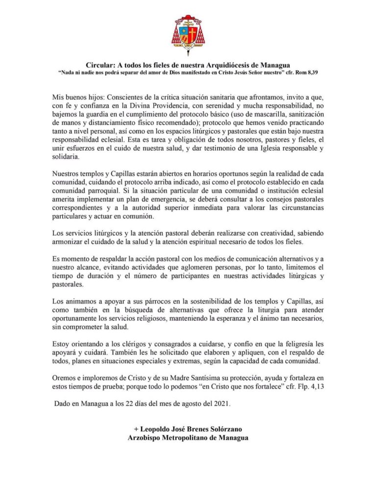 Cardenal Brenes y sociedad civil piden detener la violencia contra la iglesia católica de Nicaragua